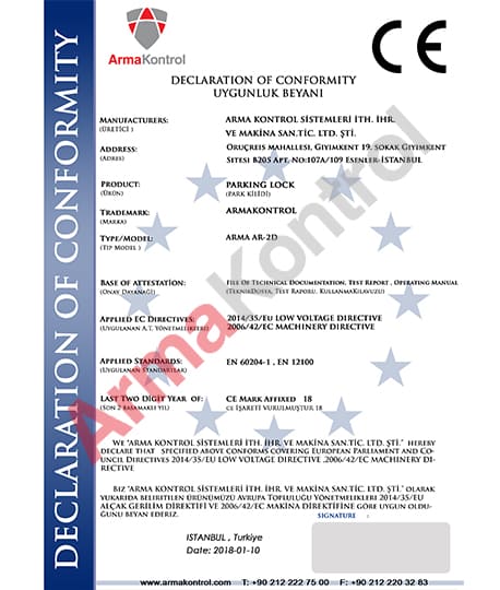 CE Kişisel Park Bariyer CE Kişisel Park Bariyer