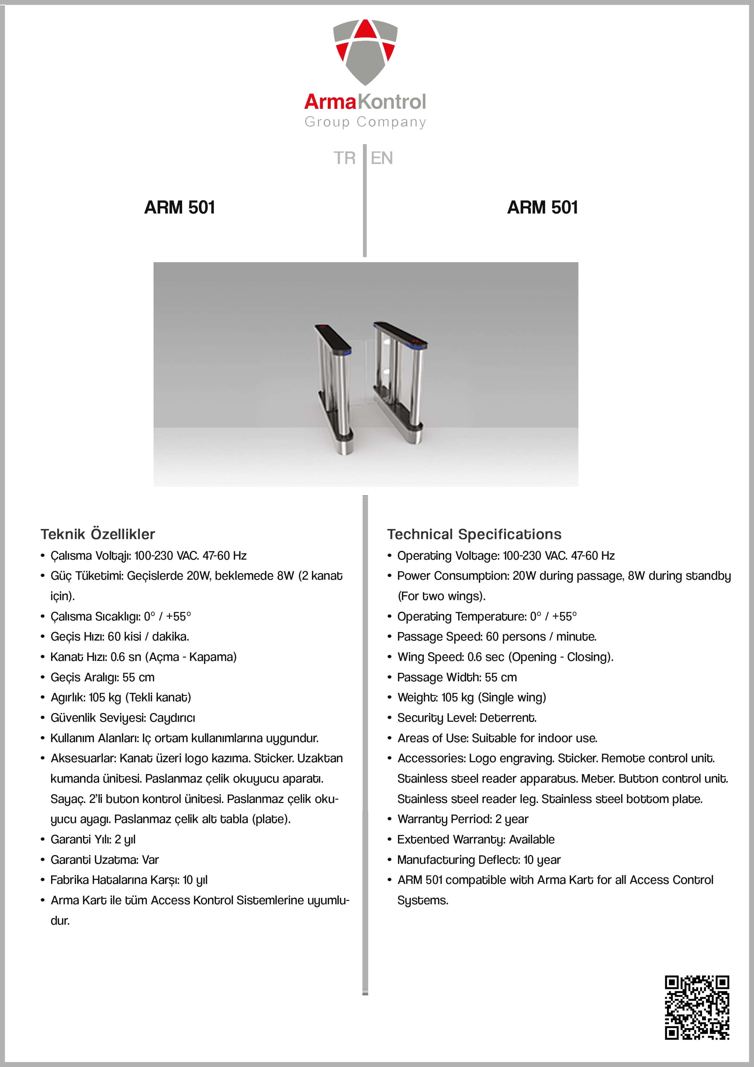 Arma Kart ile tüm Access Kontrol Sistemlerine uyumludur.