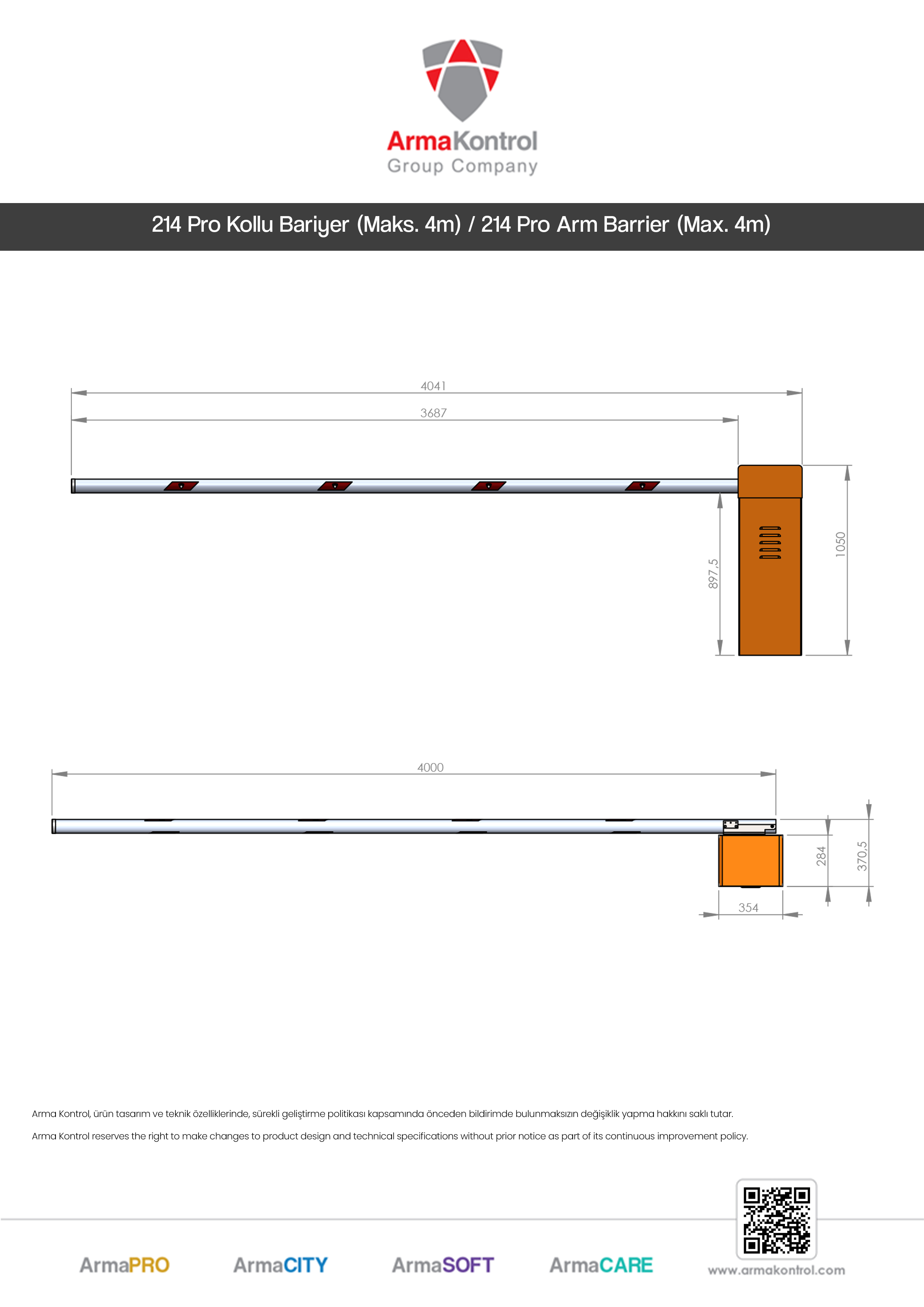 Arma 214 Pro Arm Barriers have an aesthetic appearance, a weather-proof outdoor cabin, a powerful engine, and are produced to international quality standards. They are designed to control the entrances and exits of places such as apartment buildings and complexes that require a medium level of security. Photocells on the barrier detect vehicles passing through, preventing the barrier lever from closing and any possible accidents that might arise. If desired, the barrier can be controlled with alternative accessories such as remote controls, manual buttons, card readers, license plate recognition, HGS-OGS, other mobile controls, and different lever lengths can be used depending on vehicle width.