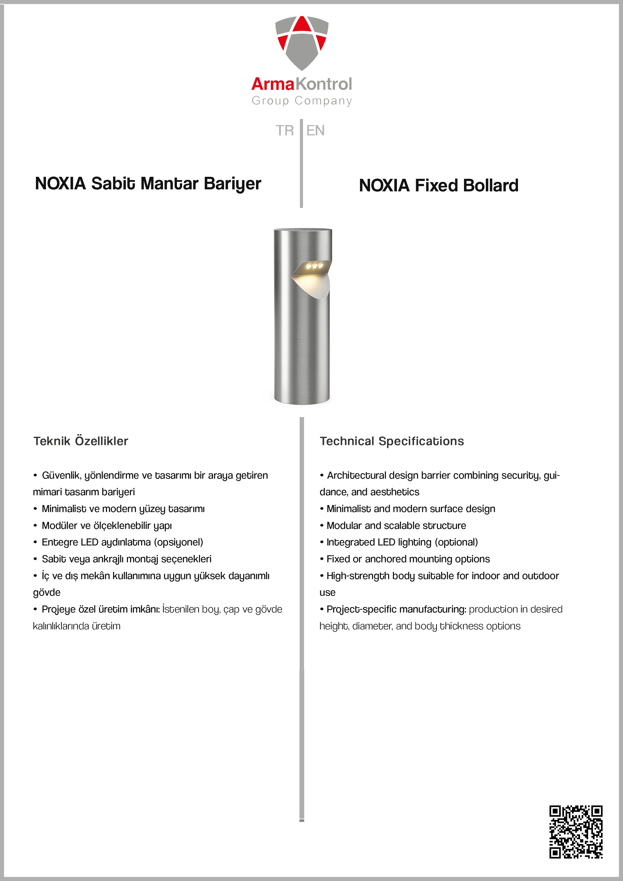 Arma NOXIA One is an innovative design barrier developed to unify security, guidance, and architectural aesthetics within a single, refined design language for modern urban environments. With its smooth cylindrical form, stainless steel surface, and integrated LED lighting detail, it adds a contemporary and prestigious character to the spaces it inhabits.
