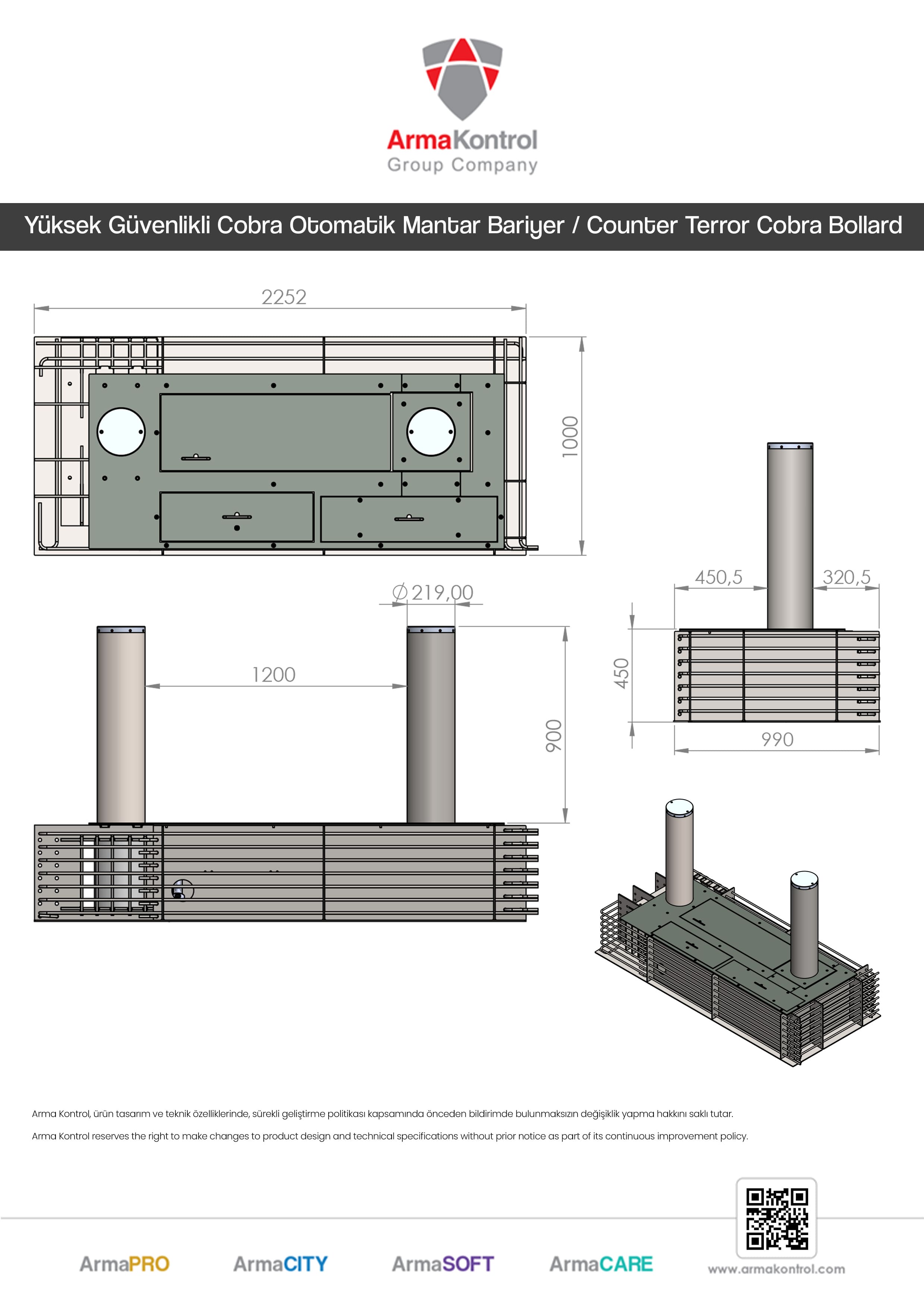 Arma Counter Terror Cobra Bollard has stopped 7.2 tons of vehicle which has 48 km speed in crash test which is executed on Mira Test Site in United Kingdom and works without problem after impact. Becouse of success on crash test, our hydraulic bollard has earned ISO crash test certification.