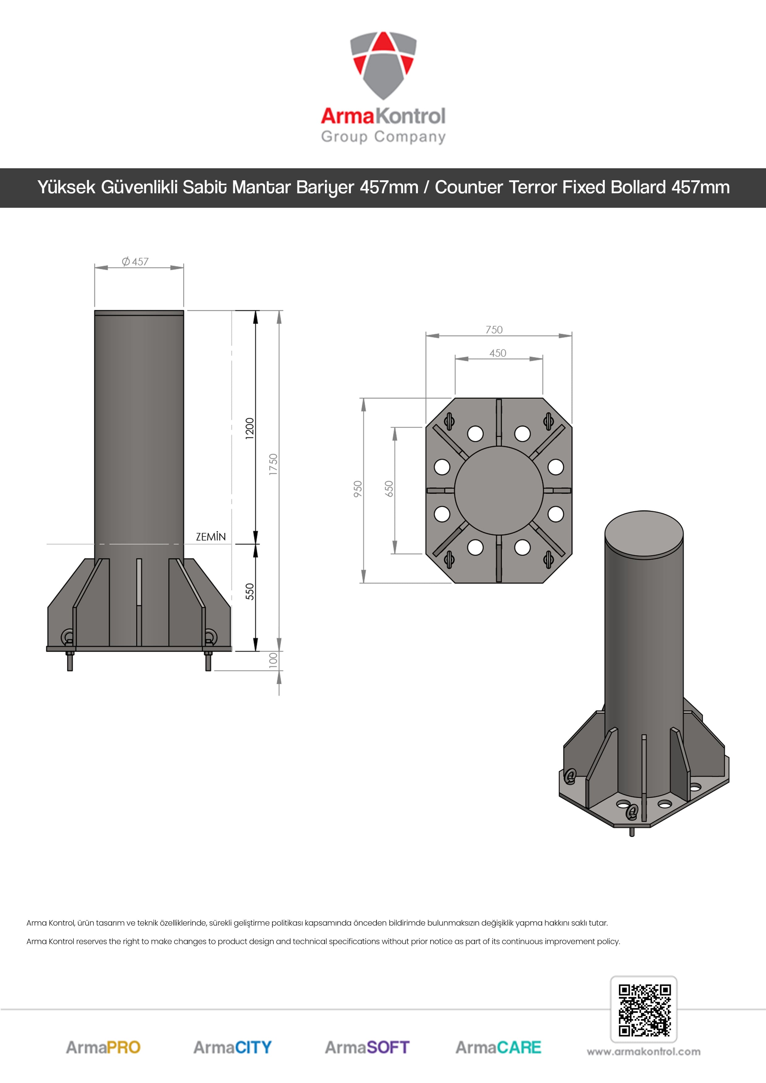 Arma Counter Terror Fixed Bollard has stopped 7.5 ton of vehicle which has 80 km speed in crash test which is executed on CSI Test Site in Italy. Becouse of success on crash test, our hydraulic bollard has earned PAS 68 crash test certification.