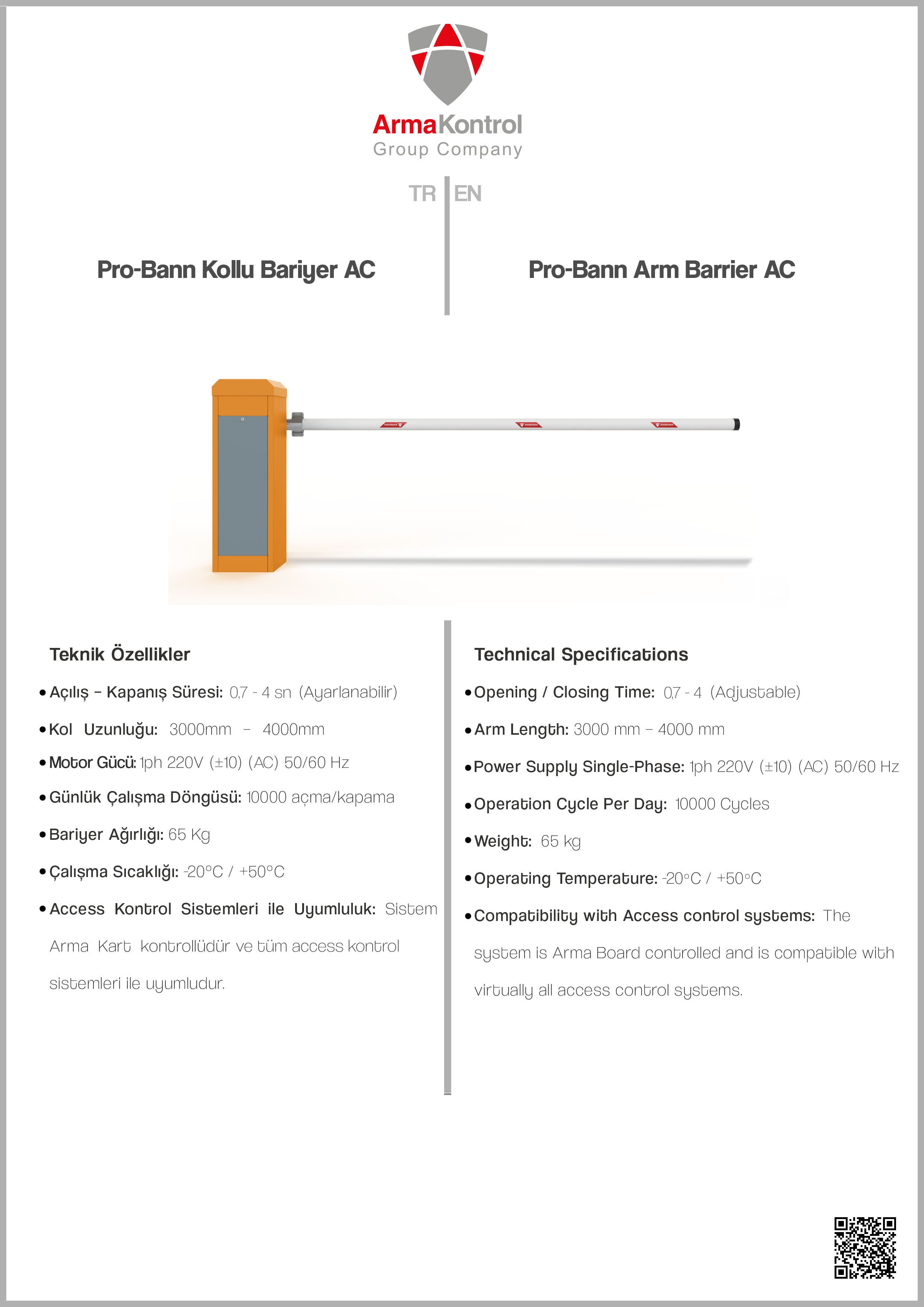 Pro-BanN Barrier AC is compatible with Arma Kart for all Access Control Systems.