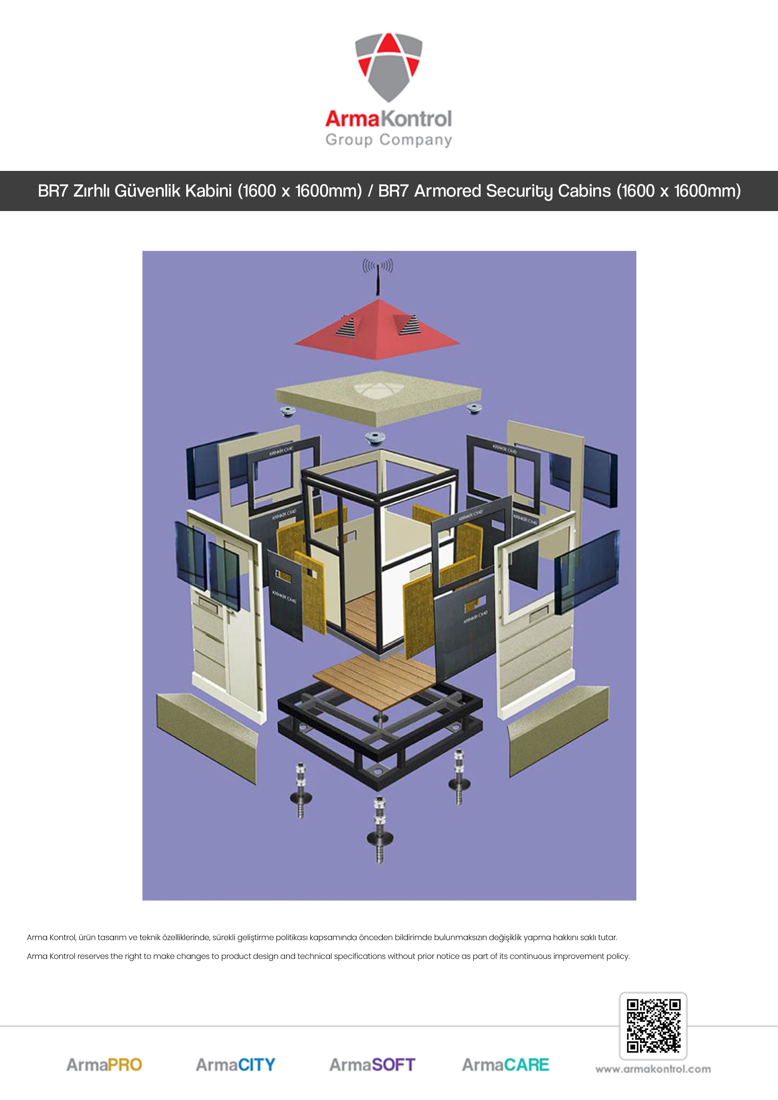 Arma Kontrol's reinforced bulletproof security cabins provide high resistance against all ballistic types from BR2 to BR7 levels. These cabins protect your security personnel and valuable assets from armed attacks and are available in Type1, Type2, Type3, and custom-made TypeQ options. TypeQ cabins are designed according to fully customized projects. Contact our expert team for a free consultation and see our other BR7 ballistic products by clicking here.