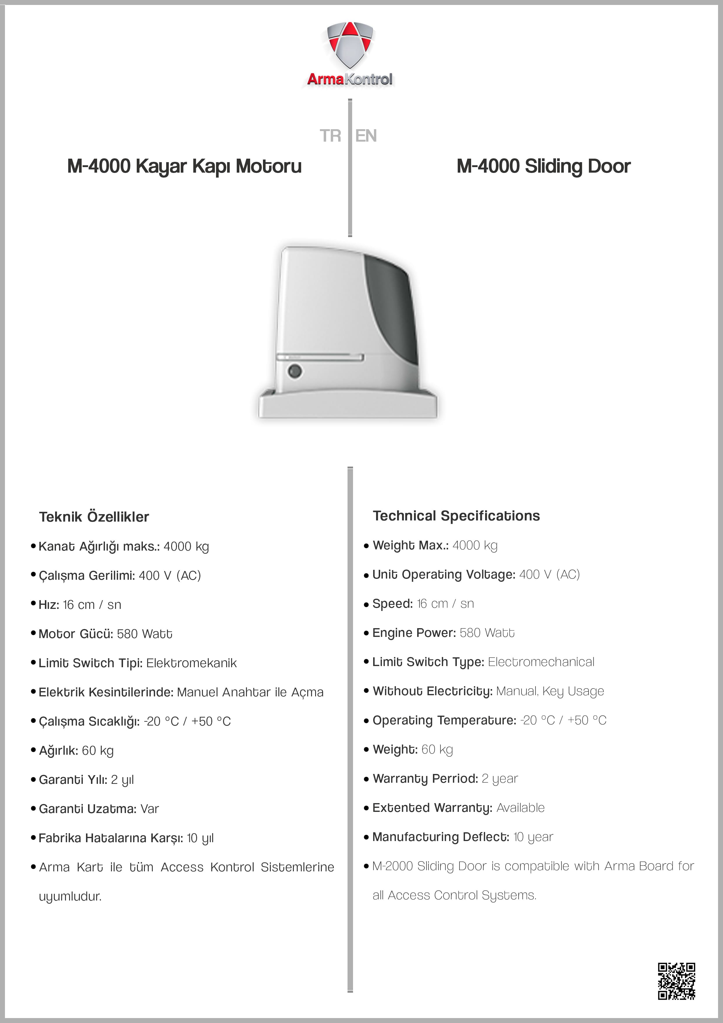 M-4000 Kayar Kapı Motoru