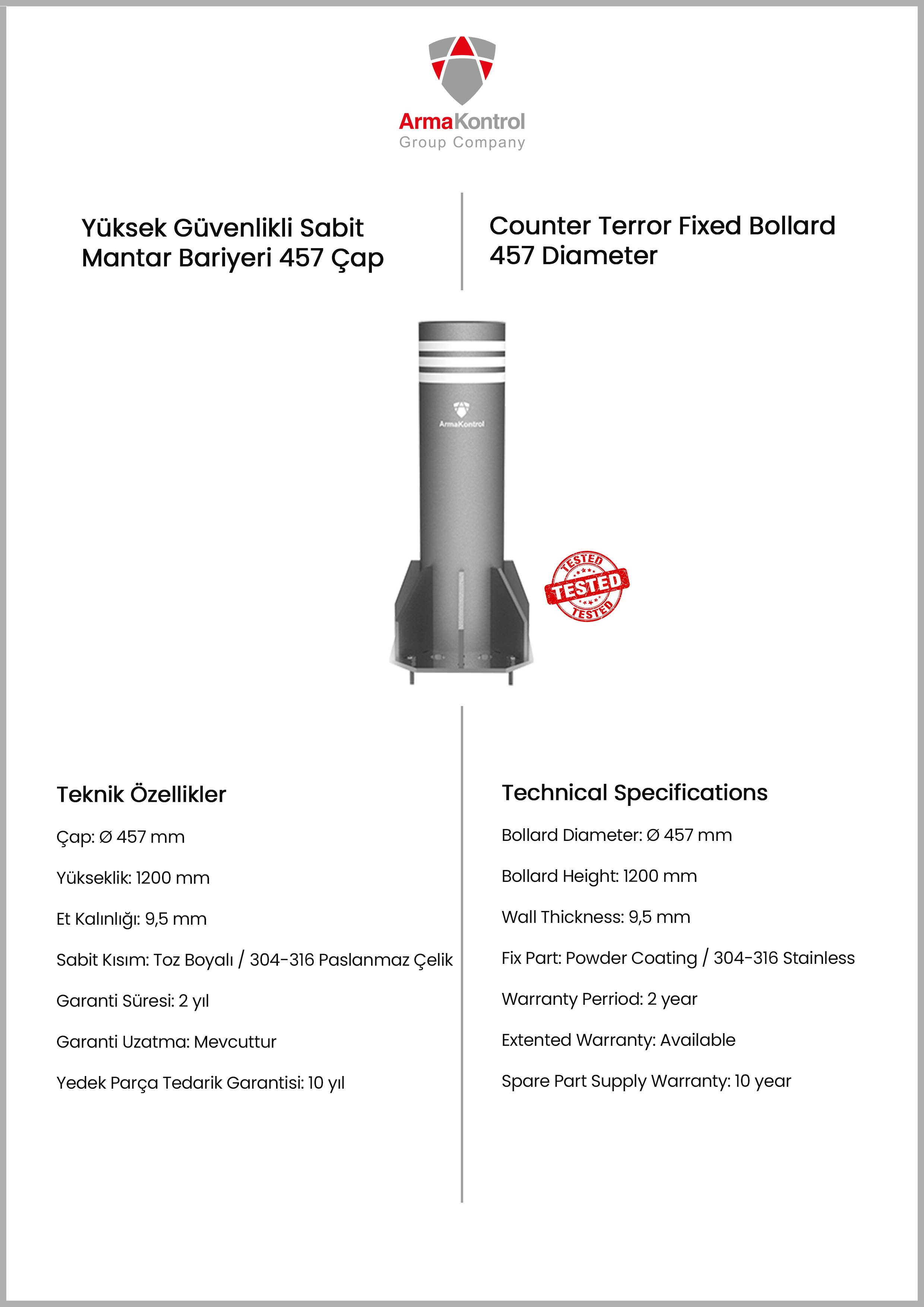 Çarpışma testindeki başarısı sayesinde ürünümüz PAS 68 çarpışma testi sertifikasını almaya hak kazanmıştır.
