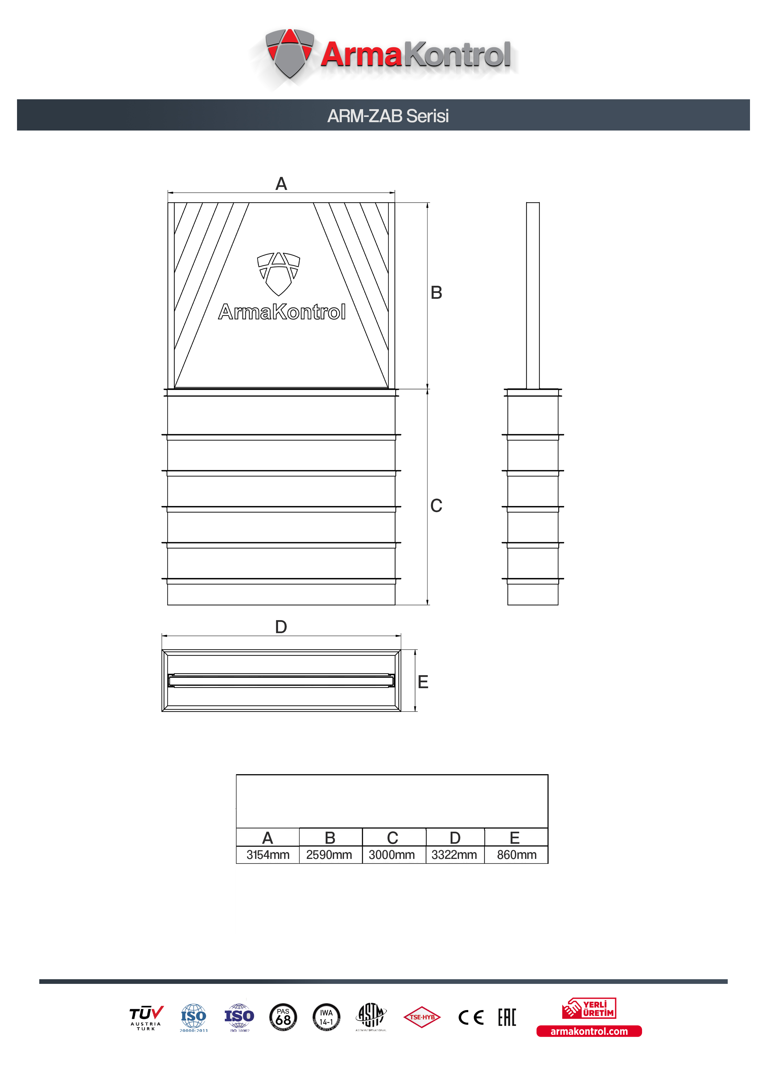 Genişlik: 2000 - 3000 - 4000 - 5000 - 6000 mm